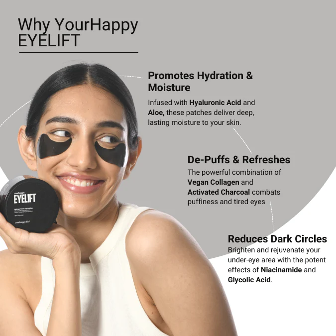 These Hydrogel Eye Patches are loaded with Activated Charcoal, Vegan Collagen, Aloe Vera Extract, Glycolic Acid, Niacinamide and Hyaluronic Acid.